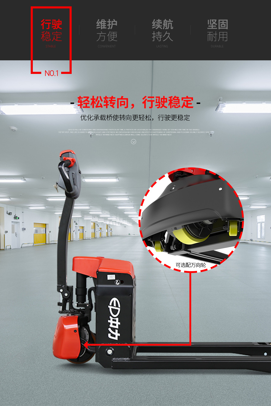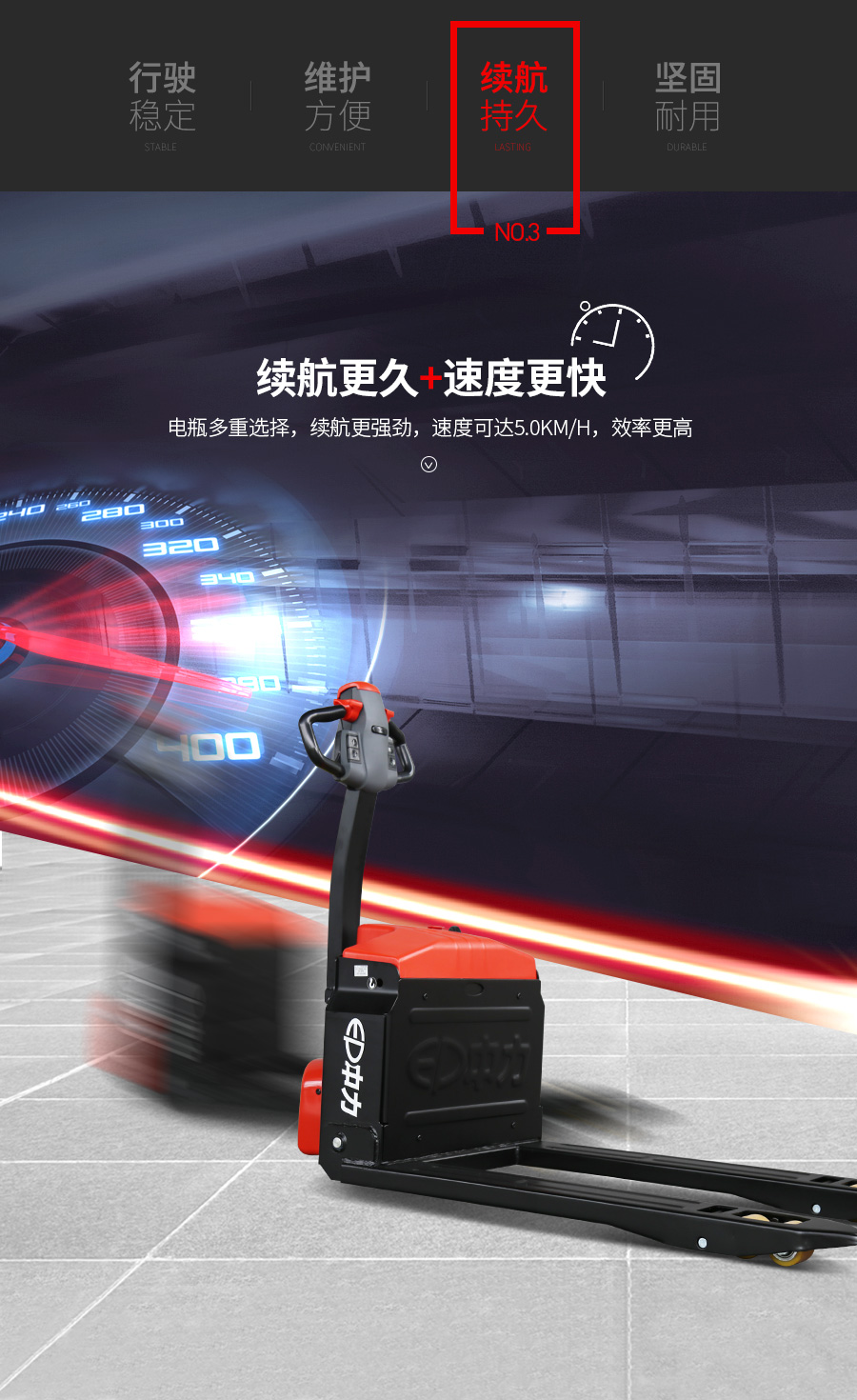 直立行走开关便于作业,免维护电瓶更省心;